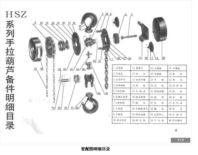 下面介紹一下手拉葫蘆的各部件名稱對照表,1位側板,2為手鏈輪,3位起重鏈輪,4位摩擦片,5位外殼,6位四齒短軸,7為棘輪,8位軸承外套,9位摩擦片座,10位花鍵孔齒輪,11為軸承滾珠,12外側板,13固定鉤,14五尺長軸,15起重鏈靠輪,16手拉鏈,17起重鏈,18起重吊鉤,9固定軸。