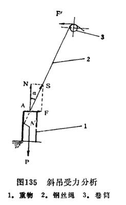 一個重物P公斤,放在地面上,如將其垂直起吊,則用相同的力量N或者比N稍大一些的力量,重物就可以離開地面。但是如用鋼絲繩斜吊(拉力S與地面垂直線成一個α角),要想吊起重物來,鋼絲繩的拉力S就要比重量P大很多才行,為什么呢?
