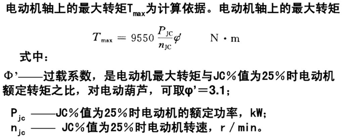 2、由于懸掛系統中的鋼絲繩具有撓性,因重物慣性而產生的附加轉矩對機構影響不大(一般不超過靜力矩的10%),故由此而產生的外部附加動載荷在進行機械零件強度計算時,可由選定工作狀態系數K,或許用應力來考慮。