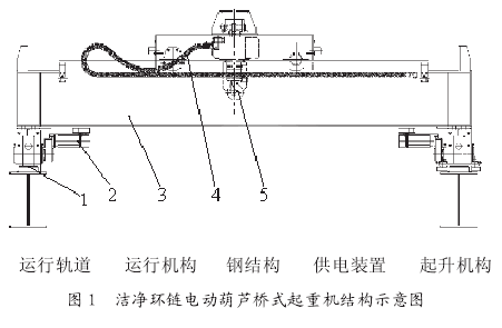 潔凈環(huán)鏈電動葫蘆橋式起重機(jī)主要由起升機(jī)構(gòu)、運(yùn)行機(jī)構(gòu)、受力結(jié)構(gòu)件、供電裝置等部分組成。