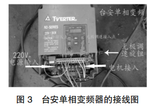 ① 采用臺安單相變頻器,代替轉子串電阻,導入變頻器調速程序,在接線端子處接入導線,實現無級調速。