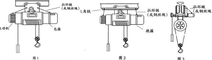 2、捆綁電動機、減速箱的第二種方法:在小車滑輪的夾板上焊牢角鐵,長度根據電動葫蘆的大小確定,角鐵規格的大小則要根據電動葫蘆的重量確定,要確保足夠的強度。捆綁電動機和減速箱的方法同上,另一端固定在角鐵的兩端(見圖2)。