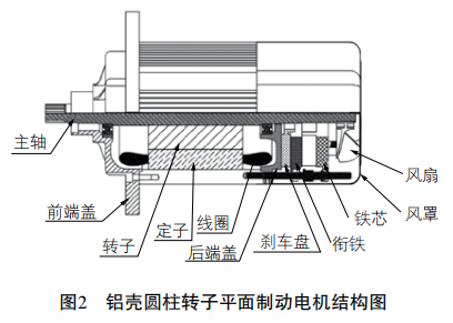 鐵殼圓柱轉子平面制動電機:除了上述鋁殼的圓柱轉子平面制動電機,電機外殼材質也可以采用鐵殼,以便與普通的錐形轉子制動電機在外觀上更為相似。