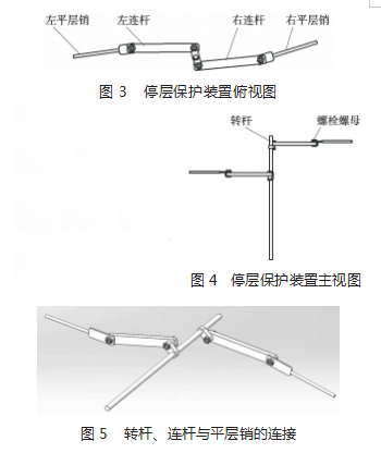 該簡易升降機在使用過程中,轉桿與連桿鉸接處的螺栓螺母在相對轉動過程中逐漸松動并脫落,引發了連桿機構對平層銷失去控制,平層銷伸出后無法正常收回。伸出的平層銷在轎廂下行過程中與導軌支架干涉,導致轎廂下行遇阻礙卡住不能運行。停層保護裝置失效是該起事故的直接原因,而其根本原因是: