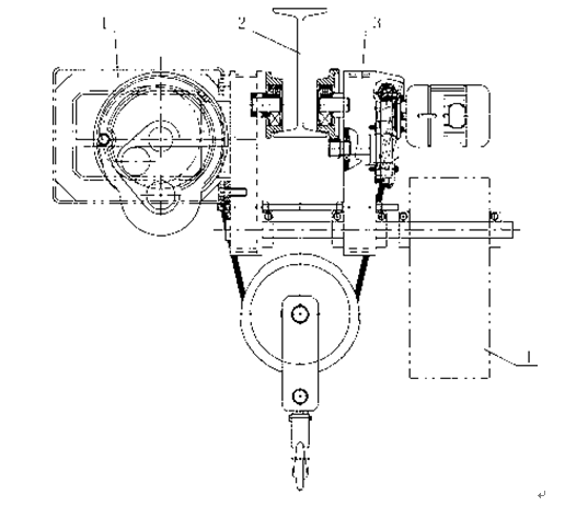 因為小車的墻板截面為框形結構,框形結構的墻板可承載載荷大,框形結構不易變形,調整螺栓所受的力也相應變小,可采用比傳統鋼絲繩電動葫蘆更小的調整螺栓,使整個低凈空式鋼絲繩電動葫蘆自重更輕,材料成本也得到降低。