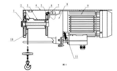 采用上述結(jié)構(gòu)后,當(dāng)微型電動(dòng)葫蘆往下牽引工作時(shí),一旦行程超過鋼絲繩的額定長度后,限位觸簧擺脫鋼絲繩的壓力,在復(fù)位彈簧的彈力作用下繞支點(diǎn)轉(zhuǎn)動(dòng)并帶動(dòng)弧形限位觸塊觸動(dòng)下限位開關(guān),使電動(dòng)葫蘆停止運(yùn)行,從而起到安全保護(hù)的作用。