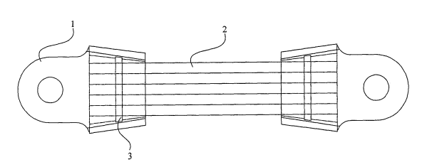 這種適合吊運重大型物件的鋼絲繩吊索具如上圖所示,包括澆鑄接頭有和鋼絲繩2(包含鋼絲繩2至多根),鋼絲繩2的長度相等且均澆鑄在澆鑄街頭1內。這種設備增強了原有設備的承重力,也縮小了單根鋼絲繩的直徑,方便了工作人員的安裝和使用。同時,在同等噸位的吊索具中,這種成本要低于原有單根鋼絲繩結構的吊索具的成本。