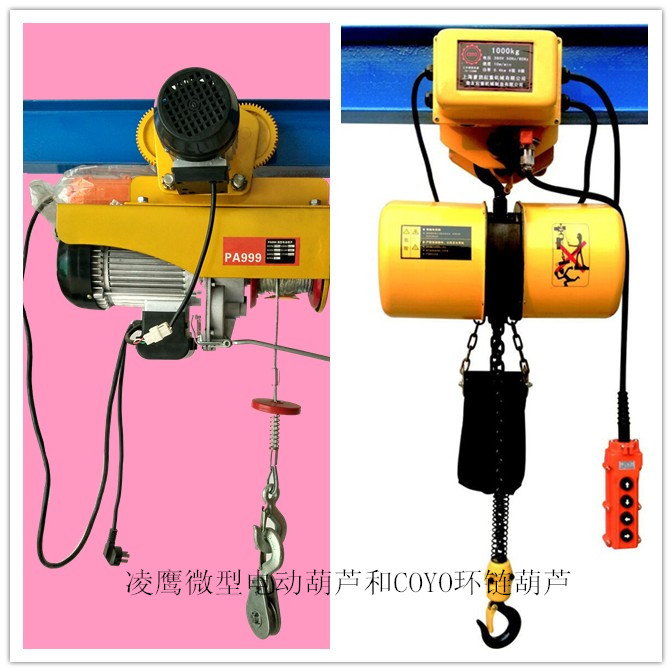 微型電動葫蘆也可以分為鋼絲繩電動葫蘆和環鏈電動葫蘆兩種。鋼絲繩電動葫蘆就是上面說到的PA型電動葫蘆。而環鏈微型電動葫蘆,指的是COYO型環鏈電動葫蘆。