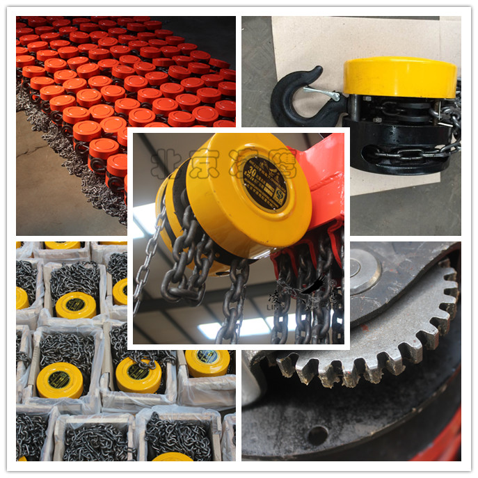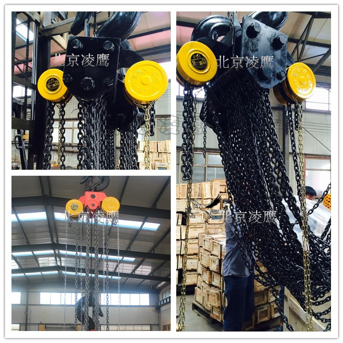 嚴禁超載使用。嚴禁用人力以外的其他動力操作。在使用前須確認機件完好無損,傳動部分及起重鏈條潤滑良好,空轉情況正常。起吊前檢查上下吊鉤是否掛牢。嚴禁重物吊在頂部等錯誤操作。起重鏈條應垂直懸掛,不得有錯扭的鏈環,雙行鏈的下吊鉤架不得翻轉。操作者應站在與手鏈輪同一平面內拽動手鏈條,使手鏈輪沿順時針方向旋轉,即可使重物上升;反向拽動手鏈條,中午即可緩緩下降。在起吊重物時,嚴禁人員在重物下做任何工作或行走,以免發生人身事故。在起吊過程中,無論重物上升或下降,拽動手鏈條時,用力應均勻和緩,不要用力過猛,以免手鏈條跳動或卡環。操作者如發現手拉力大于正常拉力時,應立即停止使用。