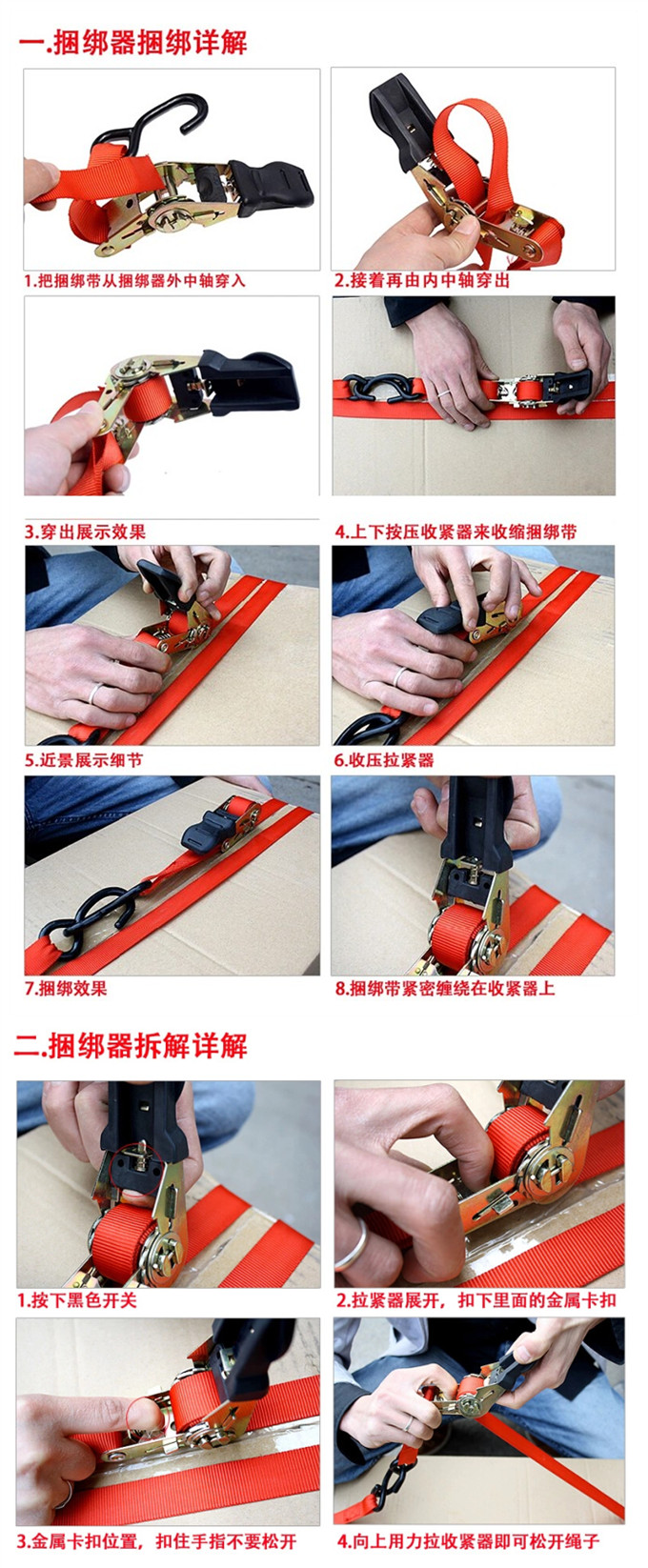捆綁器屬于手動捆綁工具,主要用于汽車運(yùn)輸貨物捆綁。捆綁器由各種不同規(guī)格的滌綸帶及金屬制品,如鉤,手拉器組成,具有操作靈活,省時省力,攜帶方便等特點(diǎn)。