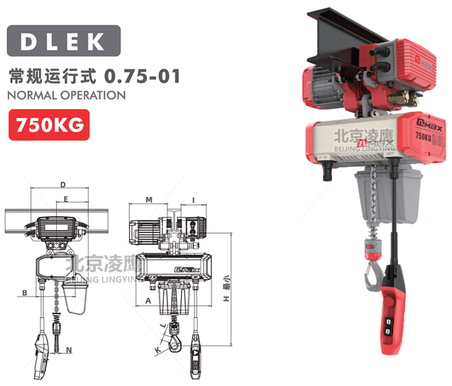 產品名稱:0.75噸DLEK環鏈電動葫蘆運行式