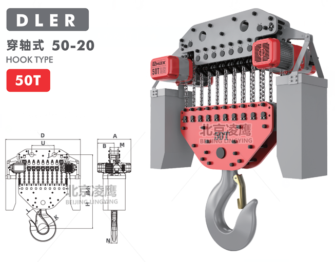 產品名稱:50噸DLER環鏈電動葫蘆穿軸式