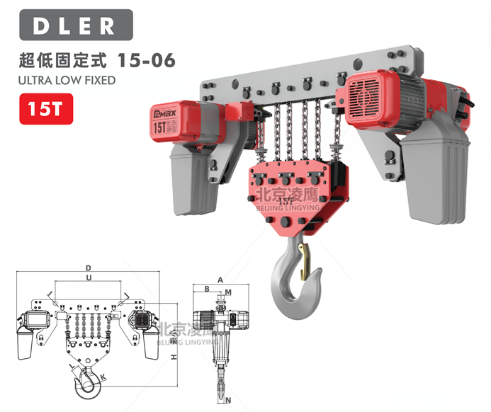 產品名稱:15噸超低固定式DLEK環鏈電動葫蘆